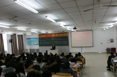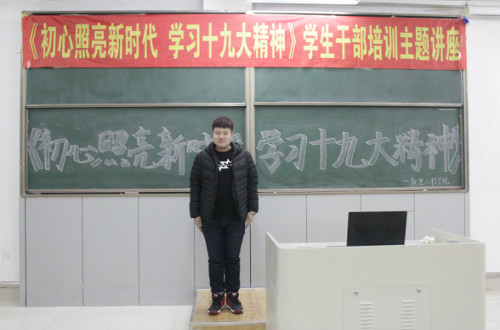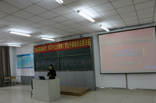3月9日中午十二点,太阳成tyc122cc集团主教学楼1-2教室座无虚席,二百多名太阳成tyc122cc集团的员工党员、员工干部、入党积极分子聚精会神,聆听着讲台上老师的讲座。这是一堂以“初心照亮新时代,学习十九大精神”为主题的党课,主讲人是太阳成tyc122cc集团机电工程公司党总支副书记邓雨巍老师。