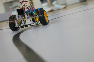 “小车寻迹”比赛是一个能让同学们把学到的知识应用到实践的舞台。此次比赛要求参赛队伍制作一个能够自主识别线路的小车,按照名单顺序在专门设计的跑道上自主识别道路行驶。在比赛正式开始之前,参赛选手历时近三周左右的时间完成了对小车的组装和调试,对在调试过程中遇到的问题,由专业的老师进行指导、完善。在老师的指导下,同学们解决了问题,找准了感觉,找到了方向,顺利完成了比赛。