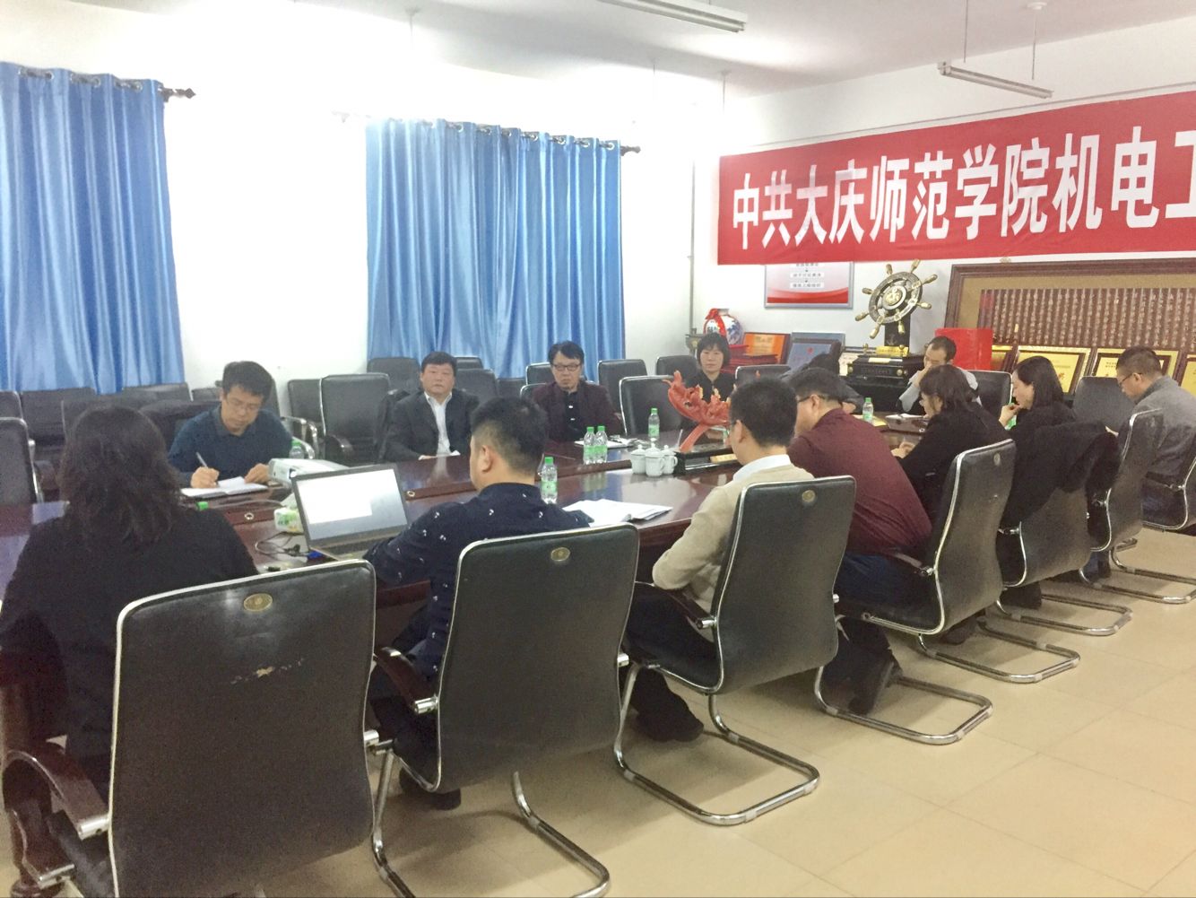为巩固审核评估结果,推进教育综合改革,有效提高教学质量。2018年11月7日,纪委书记滕强、教务处处长徐权、副处长张国发一行到太阳成tyc122cc集团电子信息工程系检查指导教研活动,太阳成tyc122cc集团经理刘永皓、经理助理成宝芝、中兴通讯派驻公司项目经理赵晓春及电子信息工程系、企业方教师参加了教研活动。