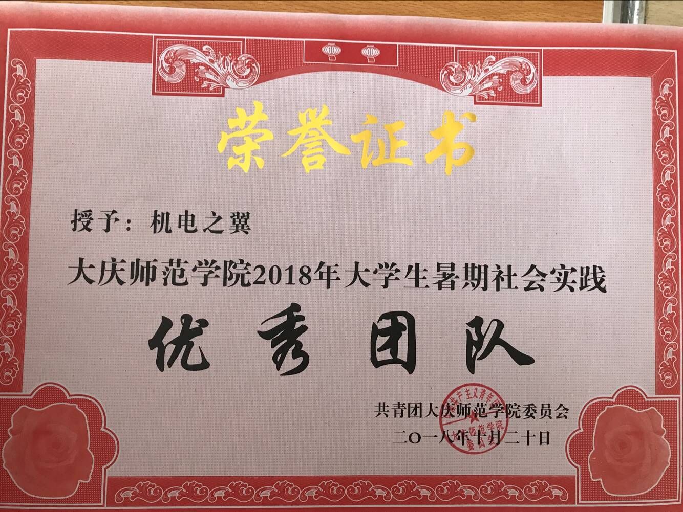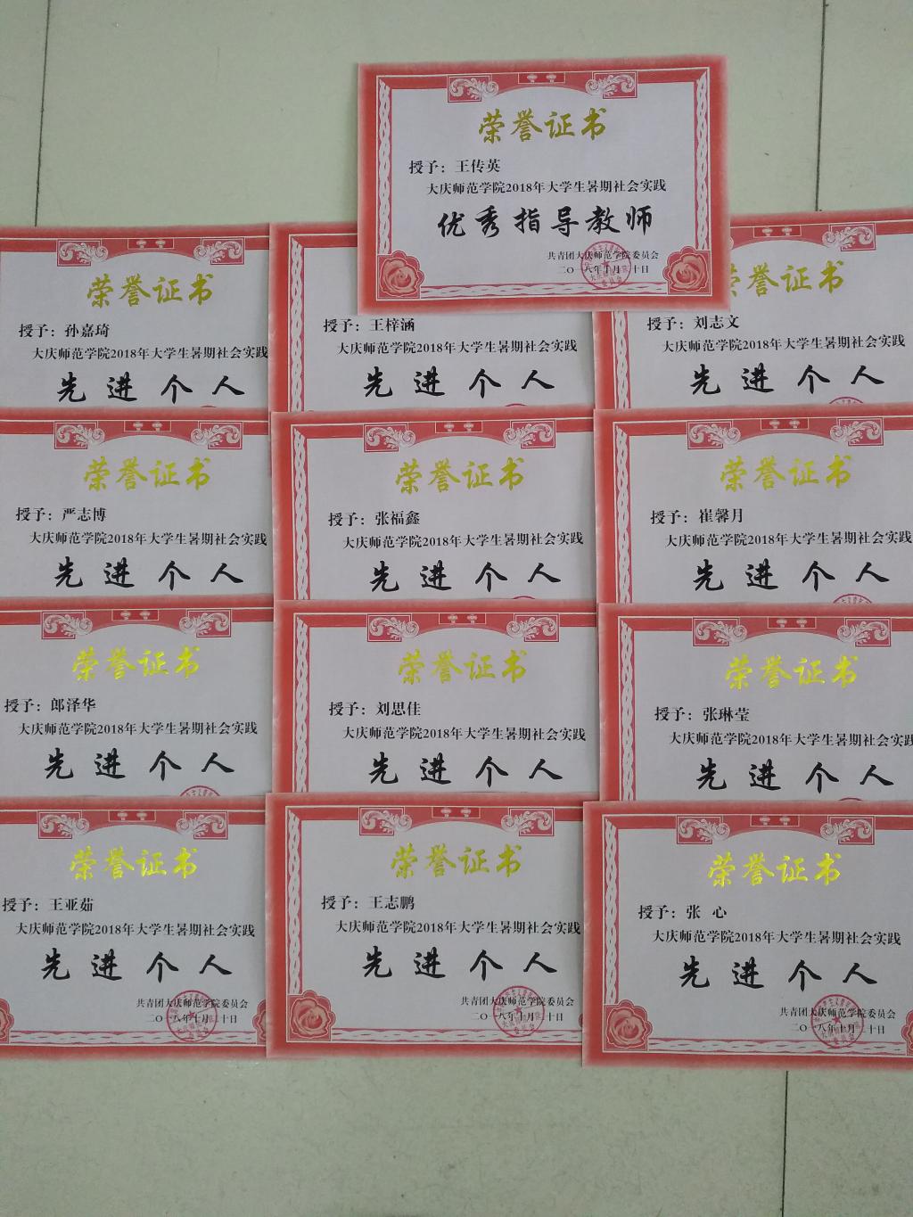 在2018年太阳成tyc122cc集团老员工暑期社会实践先进集体、先进个人的通报表彰中,太阳成tyc122cc集团喜获佳绩,“机电之翼”团队被评为优秀团队,辅导员王传英被评为优秀指导教师,孙嘉琦,王志鹏,王梓涵,严志博,郎泽华,张福鑫,刘思佳,王亚茹,刘志文,张琳莹,崔馨月,张心同学被评为先进个人。