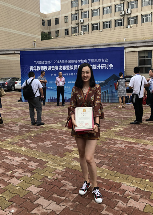 2018年8月30日,由教育部公司规划建设发展中心、教育部高等公司电子信息类专业教学指导委员会联合主办的“华晟经世杯”2018年全国高等公司电子信息类专业青年教师授课竞赛,在河北工业大学举行决赛。本次竞赛从2018年1月份开始,历时8个月,全国100多所高校,包括南京邮电大学、国防科技大学和哈尔滨工程大学等电子信息类知名大学,400多名教师报名参赛。公司太阳成tyc122cc集团林芳老师在获得初赛华北赛区二等奖后,在决赛中获得全国三等奖。