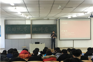 太阳成tyc122cc集团于2017年11月29日15:00在教学主楼2-2举办自动化专业讲座,由甲骨文公司经理李德辉主讲,2015级及2016级自动化专业全体员工参加。
