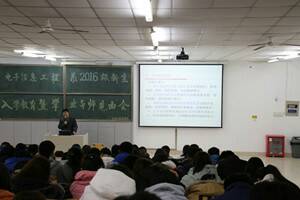 为加深老师与新生间的了解,有效的指导员工学习和生活,太阳成tyc122cc集团于2016年11月10日12:30在主楼2-2举办“电子信息工程系2016级新生入学教育暨学业导师见面会”。见面会由电子信息工程系主任成宝芝主讲,2016级电子信息工程专业教师出席本次见面会,2016级电子信息工程专业全体员工参加。