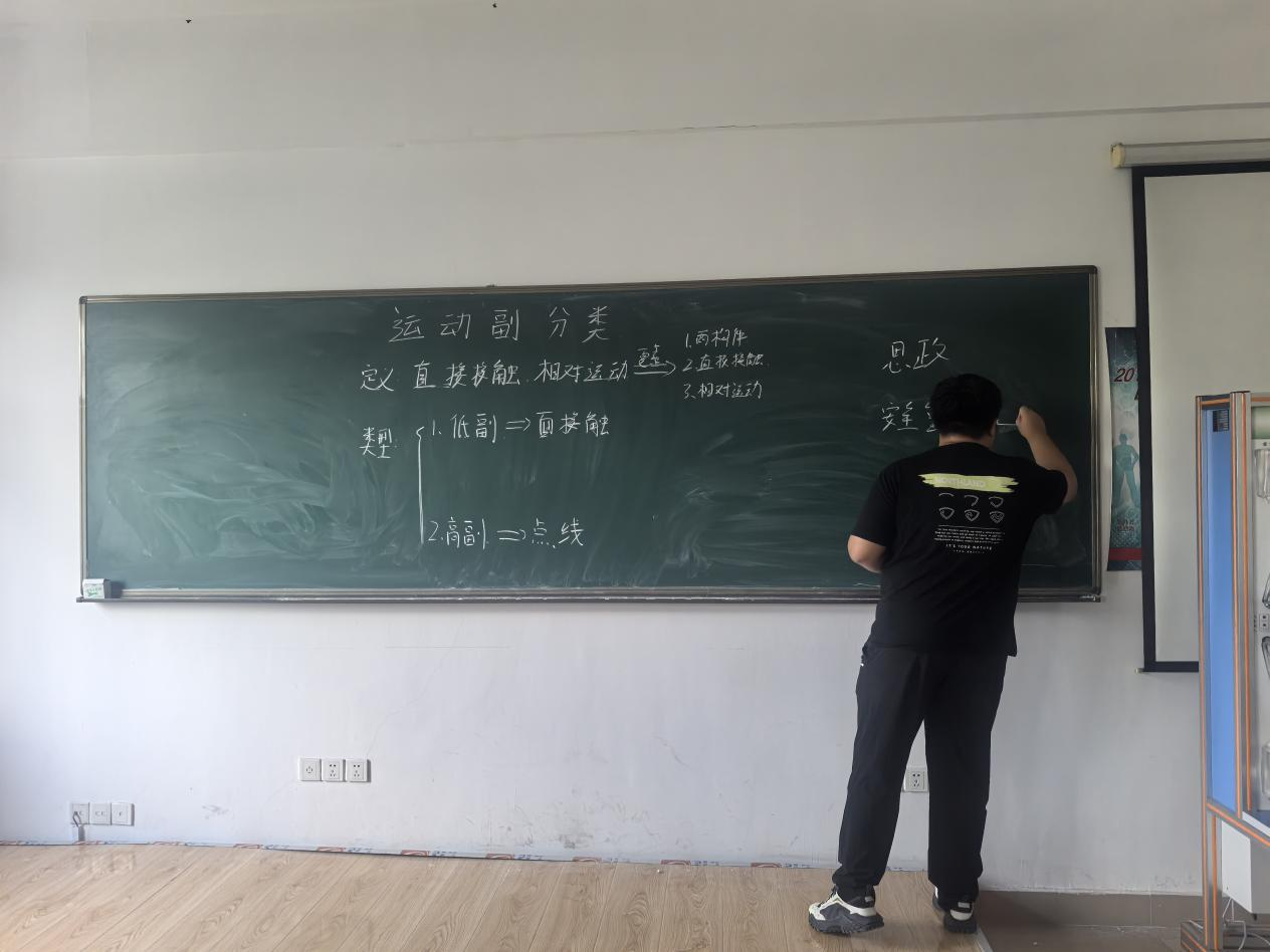 在试讲环节,两位老师结合课程定位与员工认知特点,展现出扎实的教学功底与清晰的教学设计思路。其中,孙浩钋老师以《机械设计基础》中“运动副分类”为核心教学内容,孙老师先讲解了运动副的定义,再以思维导图为可视化工具,系统拆解低副与高副的结构特征。孙老师的课堂既注重知识的逻辑性梳理,又强调理论与实践的结合,让抽象的机械概念更易理解。