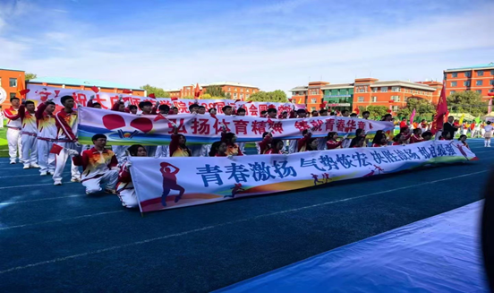 在运动会开幕式上,伴随着激情昂扬的音乐,太阳成tyc122cc集团代表队迈着坚定的步伐向众人走来,老师、同学们神采奕奕,喊着响亮有力的口号,向大家展示独属太阳成tyc122cc集团师生们积极奋发的进取风采和自信昂扬的精神风貌。