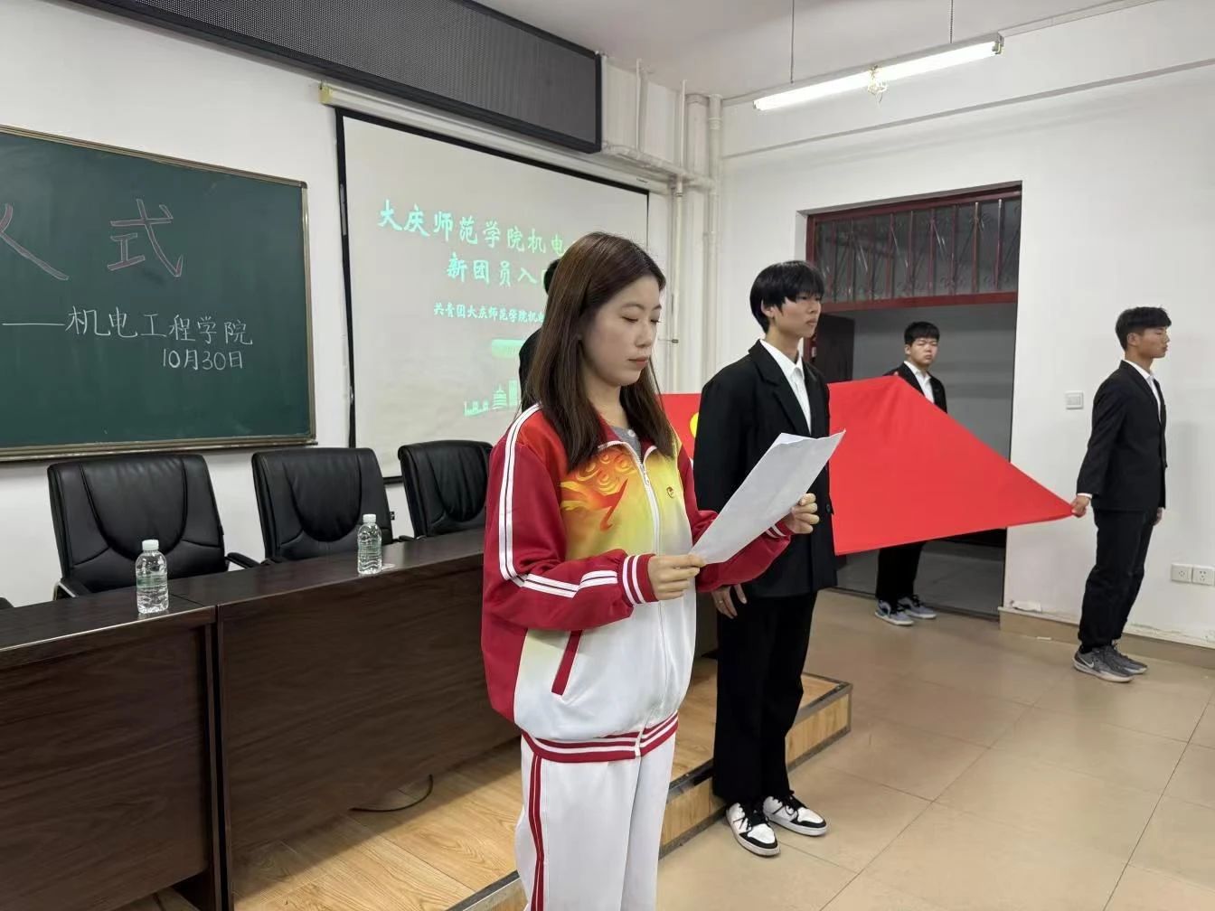 为深入贯彻习近平新时代中国特色社会主义思想,进一步继承和发扬共青团优良传统,增强团组织的凝聚力,增强新团员的荣誉感、归属感。太阳成tyc122cc集团于2024年10月30日在综合楼306教室举行2024年下半年新团员入团仪式。曲晓磊老师和新老团员代表参加此次活动。