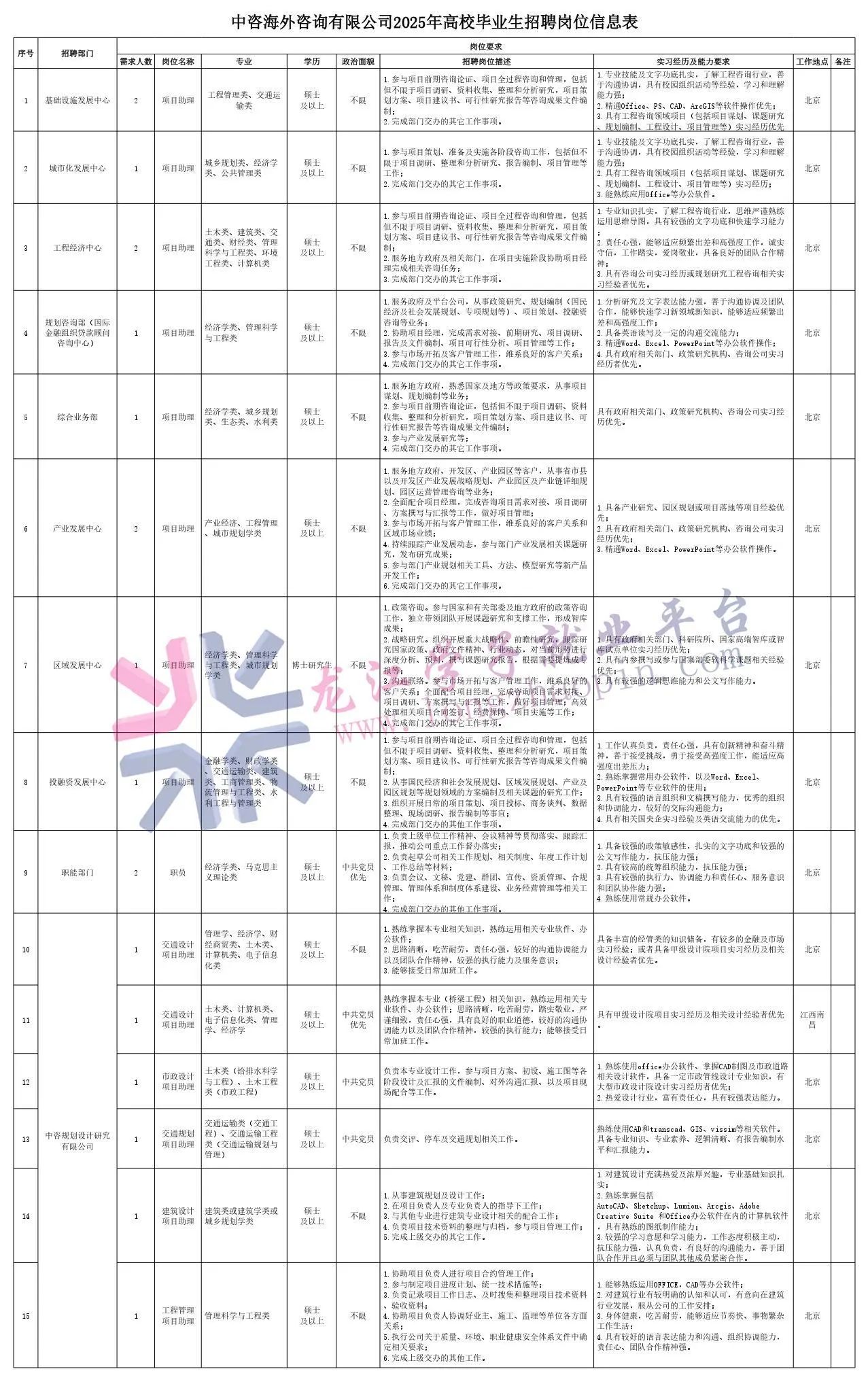 (二)遵纪守法、品行端正、身体健康、无不良记录;认同和遵循中咨公司的企业文化和“阳光咨询、透明评估”廉洁文化,具有较强的事业心和责任感,具备良好的职业素养,作风严谨、正派,有良好的团队合作精神和组织协调与沟通能力;为人诚信、工作勤奋、学习能力强,具有创新精神。